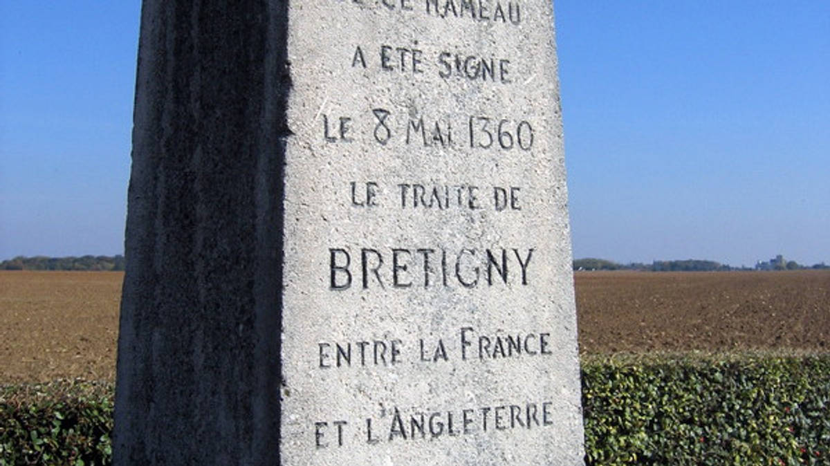 La stèle | ©Rilou du Cotentin / Wikimedia Commons / CC-BY-SAVous voulez tout savoir sur le traité de Brétigny, signé non loin de Chartres, en pleine guerre de Cent Ans ? Vous êtes au bon endroit !