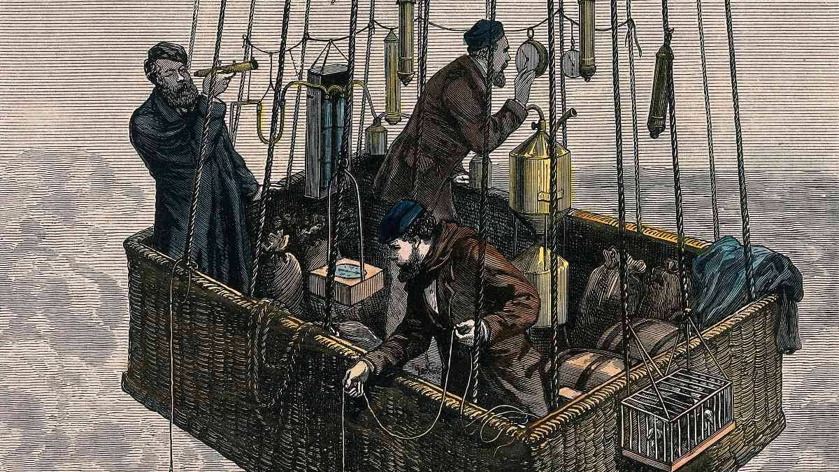 Deux aéronautes, qui, le 22 mars 1874, réalisent une première ascension en ballon à une altitude de 7300 mètres, à bord de L’Étoile polaire.