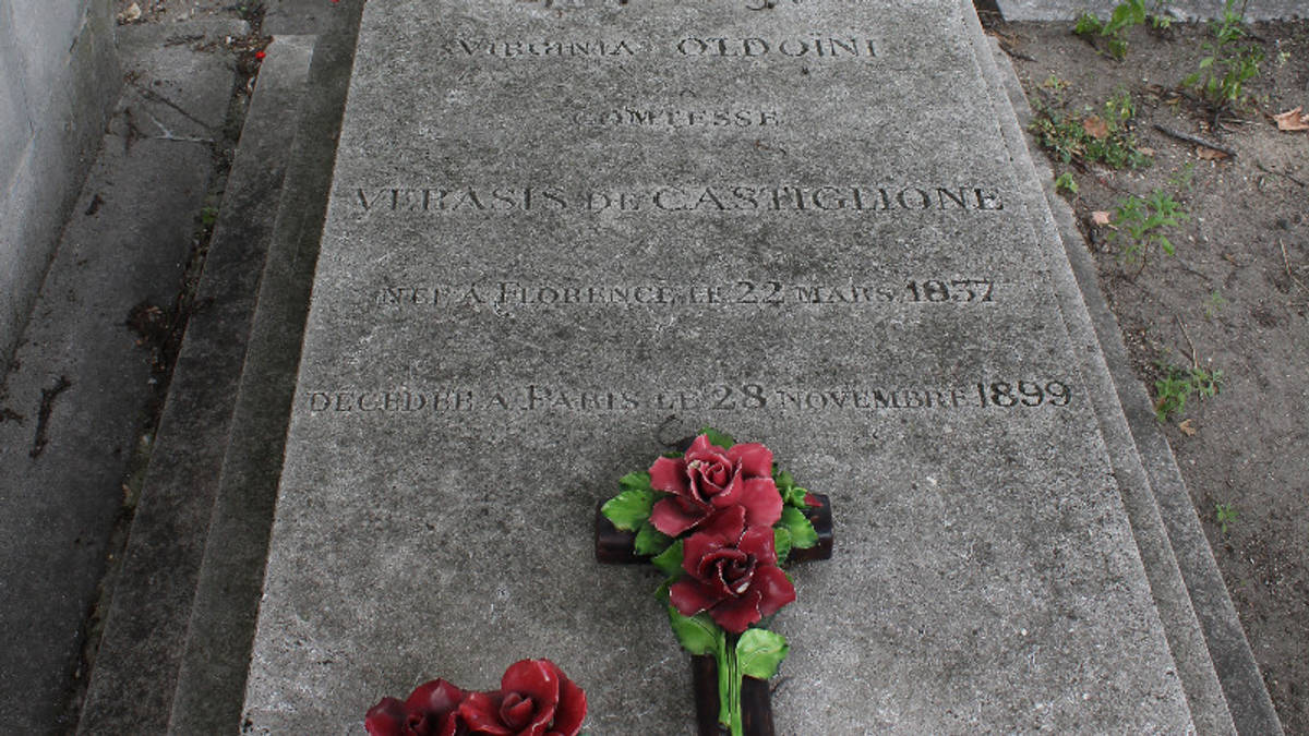 Elle rêve d’un tombeau dans les Alpes en marbre blanc, à la frontière italienne... elle n'aura que ce modeste tombeau perdu au milieu de la mer de tombes du Père-Lachaise.