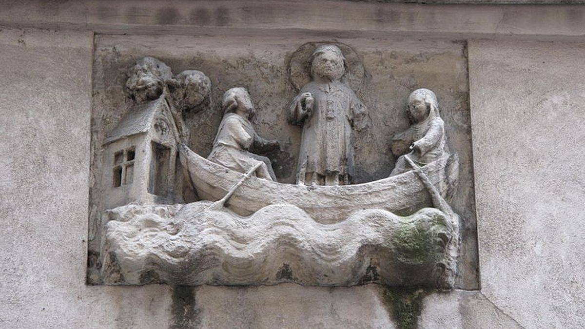 Bas-relief de St Julien l'Hospitalier (14e s), 42 rue Galande | ©Tangopaso / Public domainLa légende de saint Julien le Pauvre, ou Julien l’Hospitalier ? Tragique !