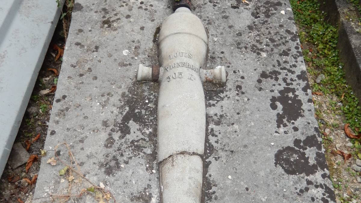 Tombe de Louis Vigneron | ©Touron66 / CC-BY-SASur sa tombe, point de mention de dates, mais celle, mystérieuse, de « 305 ko », sur une pièce de canon en pierre…