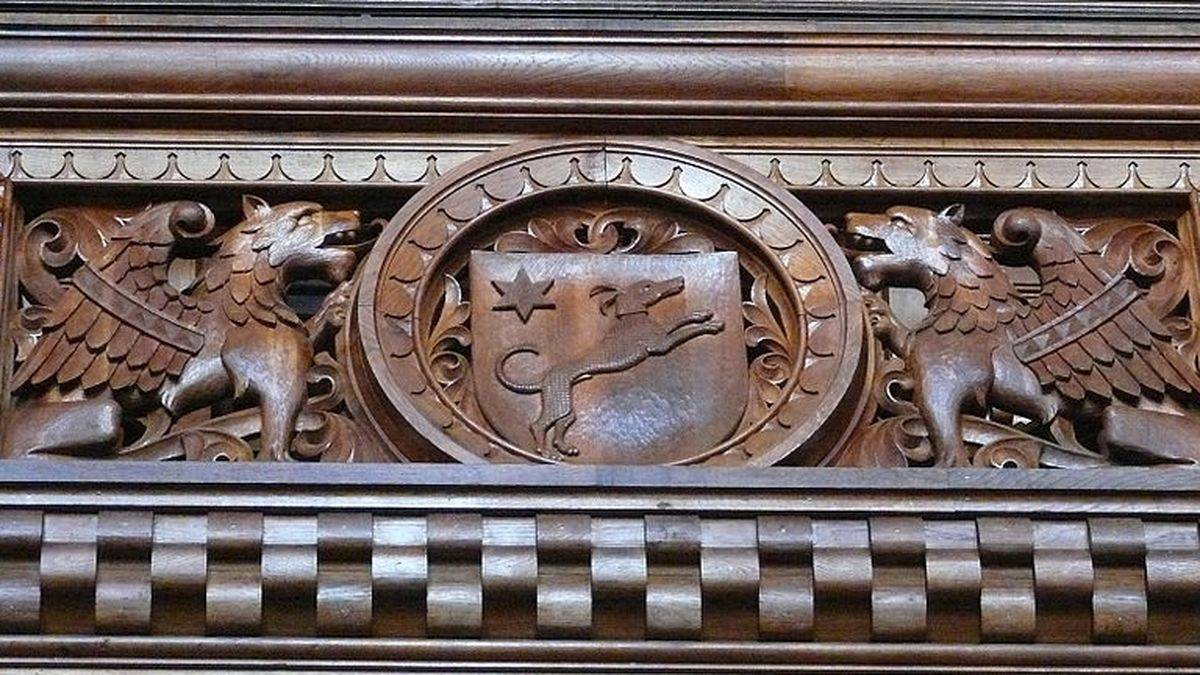 Il s'agit du blason des seigneurs-abbés, mais c'est aussi une histoire vraie, selon la chronique chantée de Léonard Ott, qui rapporte qu'un lévrier noir a vaillamment défendu la ville de Wattwiller, en 1525...