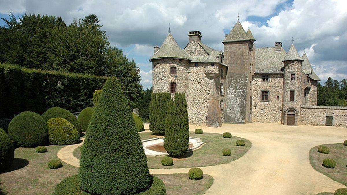 « En se levant un peu, Savignan aperçut le château, dans une espèce de gorge soudain ouverte en vallée. Il eut le temps de bien regarder l'endroit où il allait rencontrer son ancienne fiancée. Il avait devant lui une de ces grandes maisons fortes qui proclame le travail de plusieurs générations. Le donjon carré en pierres noires remontait au 14e siècle. Deux tours plus élégantes, avec leurs toits en poivrières et leurs sommets en encorbellement, dataient de la Renaissance. Un corps de logis avait été refait au 17e siècle, à l'époque où le fils du parricide Jean de Soléac, retiré là, commandait à Le Nôtre ces charmilles dont l'ordonnance classique étonnait le regard dans ce paysage, cerné par une ligne de roches de basalte à larges et sombres cassures. Entre cette crête et le fond du vallon, foisonnaient des arbres séculaires qui prolongeaient en sauvagerie le parc où se devinait cette obsession de Versailles, un des principes de ruine de notre noblesse. »
