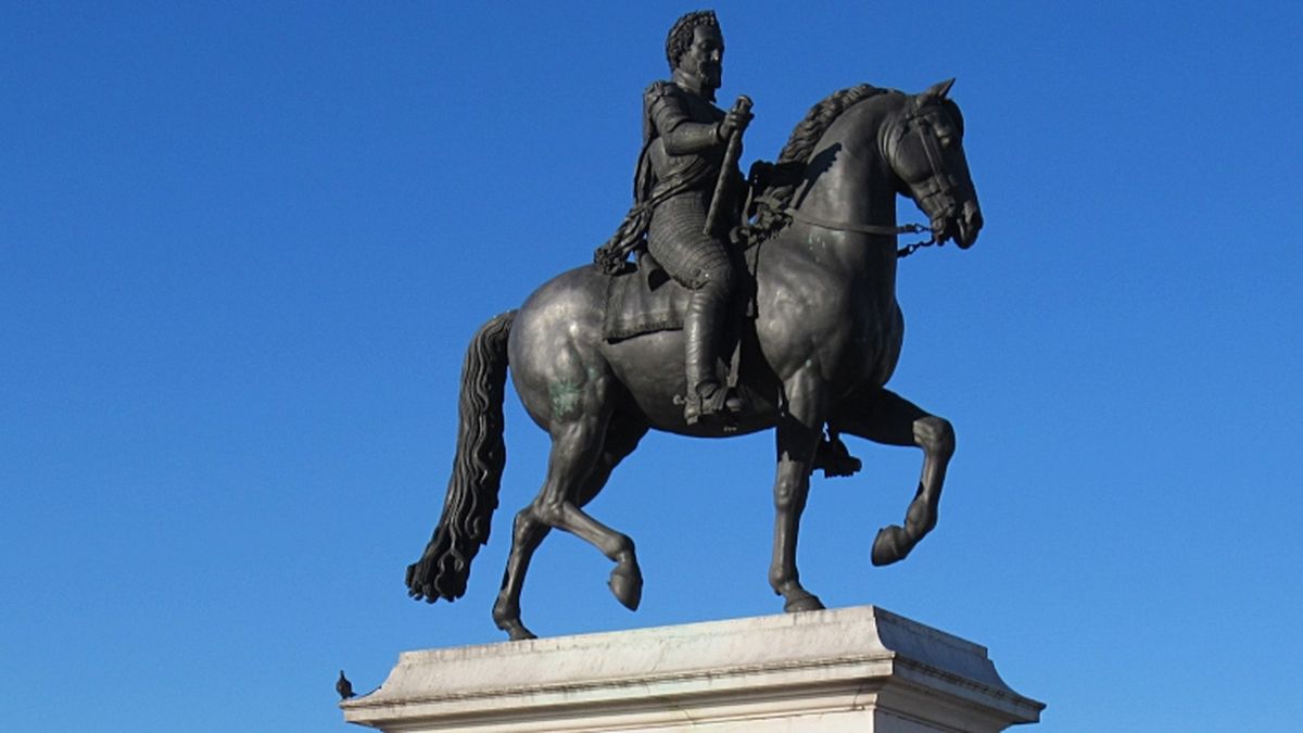 Ferdinand Ier de Médicis, grand-duc de Toscane, avait fait fondre un grand cheval de bronze, dans l'idée, ensuite, d'y mettre son effigie dessus. Mais il meurt entre temps.