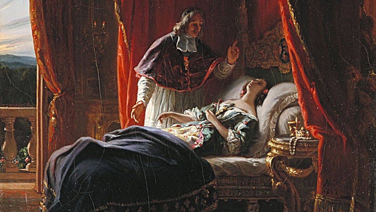 Le grand Bossuet, l’orateur à la mode, écrit l’oraison funèbre d’Henriette, qu'il doit prononcer pendant les funérailles d'Henriette, à la basilique Saint-Denis.