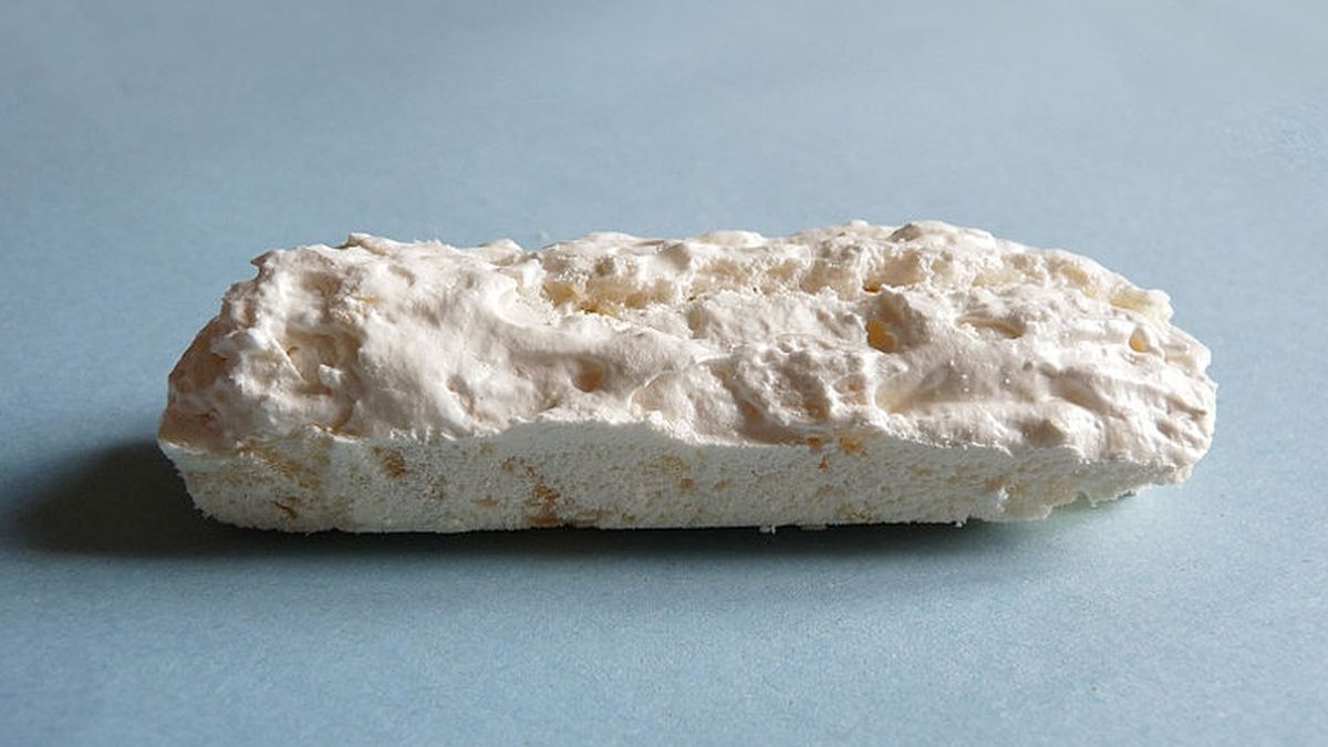 Et dans cette caisse, que trouve-t-on ? Une meringue aux amandes, légère comme tout, légèrement aromatisée à la vanille.