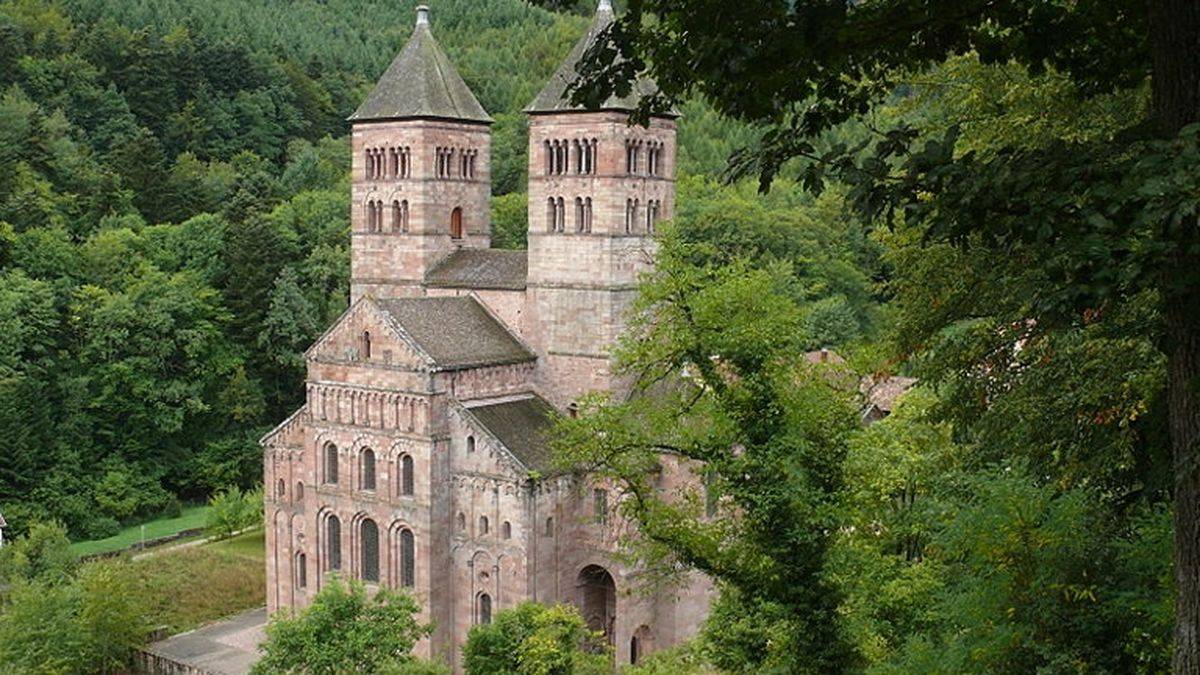 Un petit paradis sur terre... où s’élèvent aujourd’hui deux tours en grès rose, géantes au-dessus des frondaisons : il s’agit de l’église romane de l'abbaye de Murbach !