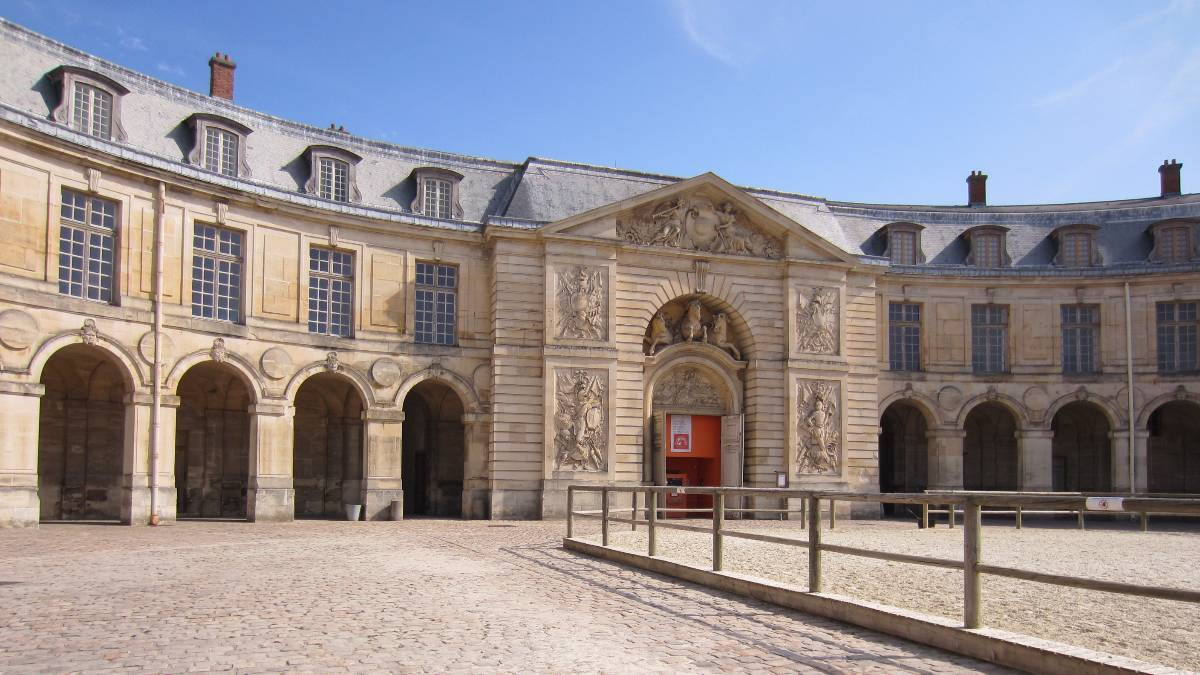 La galerie des Carrosses se trouve au cœur de la Grande Écurie, construite entre 1679 et 1682 par Hardouin-Mansart.